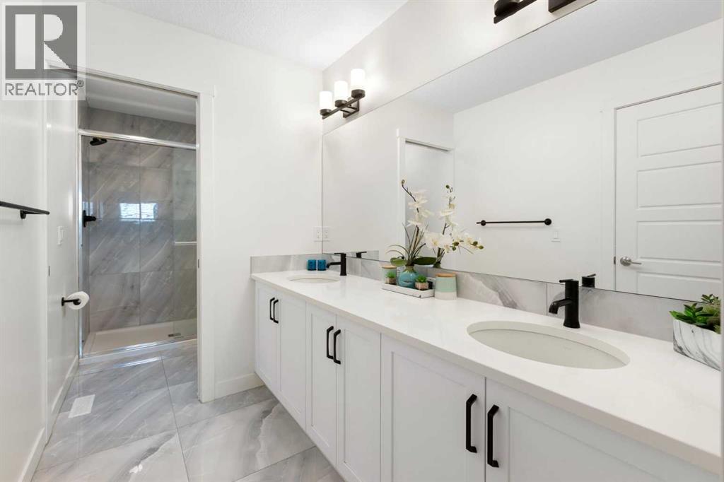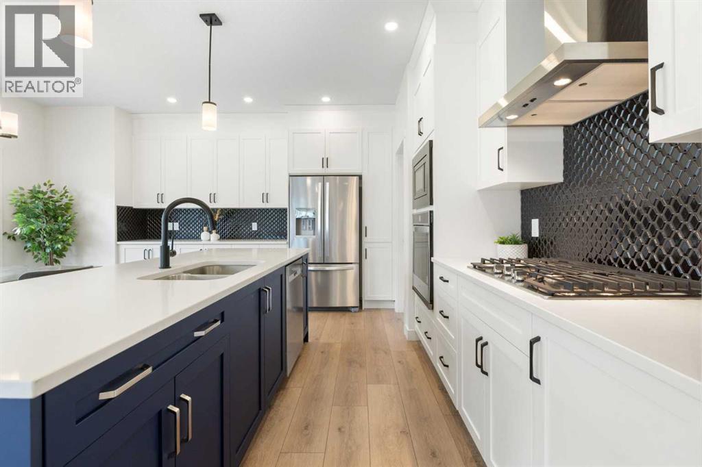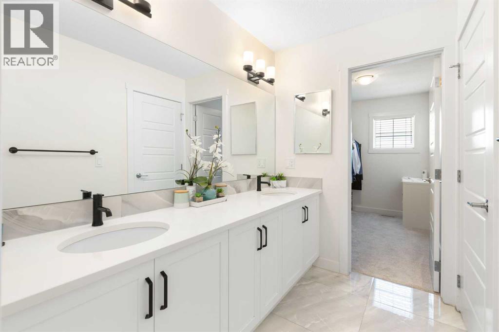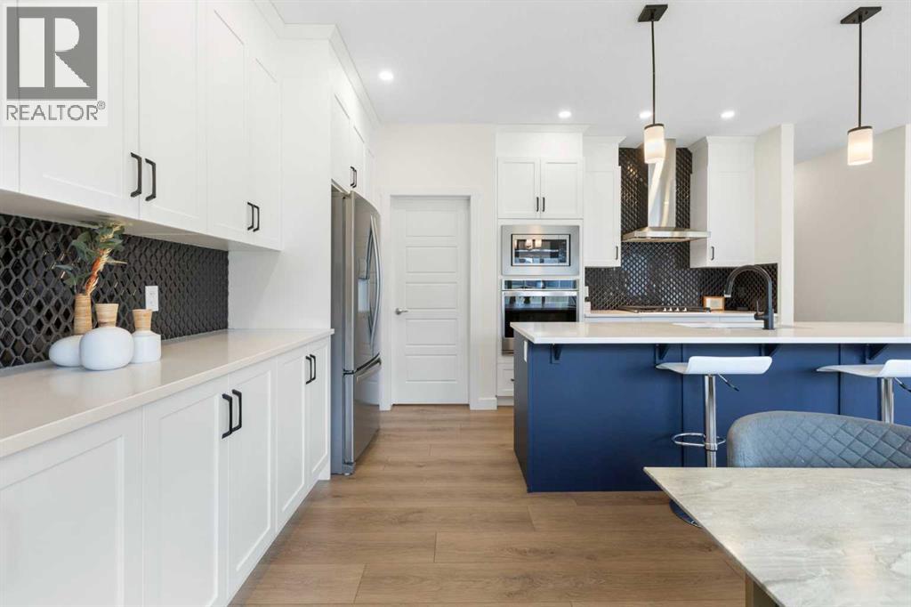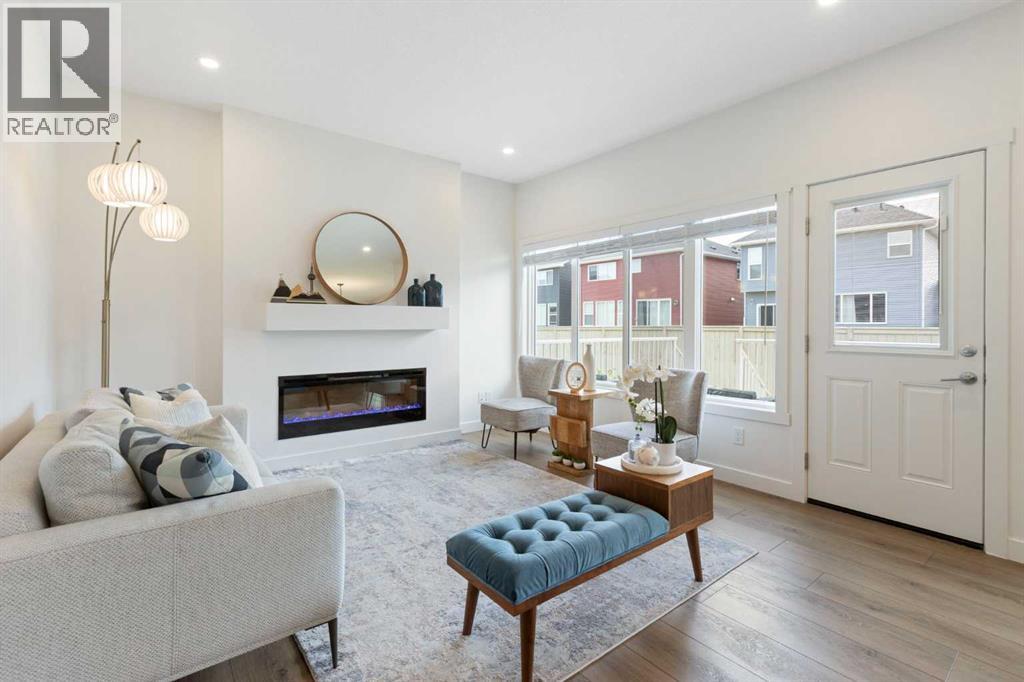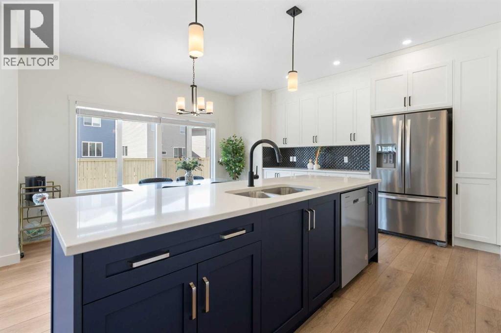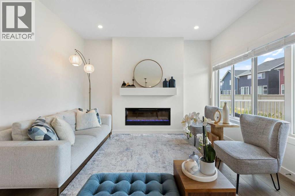 NEW PRICE. Welcome to this modern 4-bedroom home! Offering over 2,250 sq. ft. of refined living space, this beautifully crafted residence includes central air conditioning for year-round comfort. The open-concept kitchen features sleek quartz countertops, a walk-through pantry, and flows seamlessly into the inviting great room with a cozy fireplace. Upstairs, discover four spacious bedrooms—including a serene primary retreat with a spa-inspired ensuite—a versatile loft, and a main-floor office, providing the perfect blend of space, style, and functionality. Three beautifully finished bathrooms, wide vinyl plank flooring, and contemporary finishes throughout add sophistication and ease. The west-facing backyard invites golden afternoon light, while the double attached garage offers everyday convenience. Nestled in the peaceful, family-oriented community of Bayside—known for its picturesque canals and scenic walking paths—you’ll be minutes from parks, schools, and local amenities. This is a home where elegance meets everyday living. - OPEN HOUSE: Sunday, Nov 16, 1 - 3 pm. (id:47423)