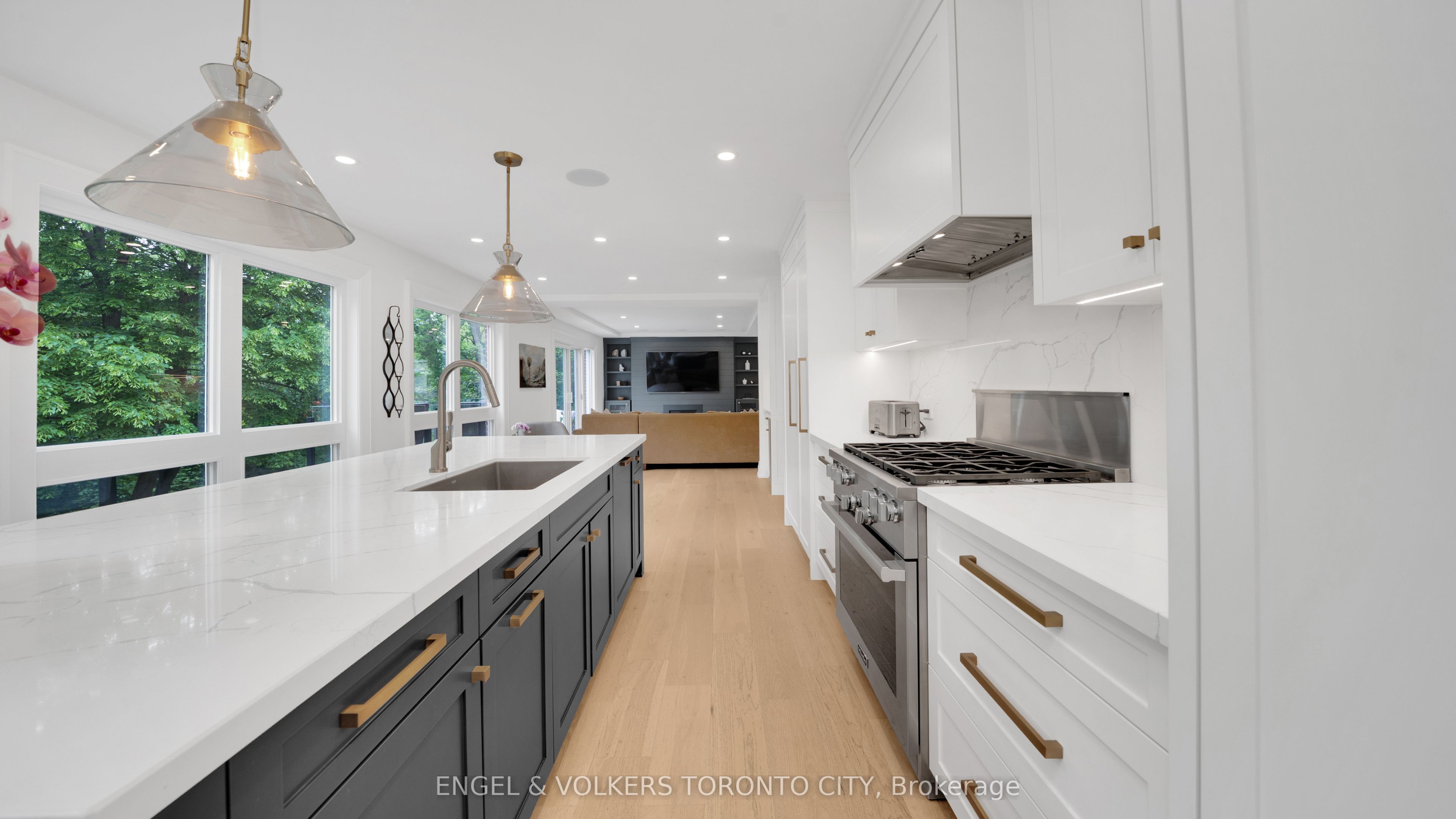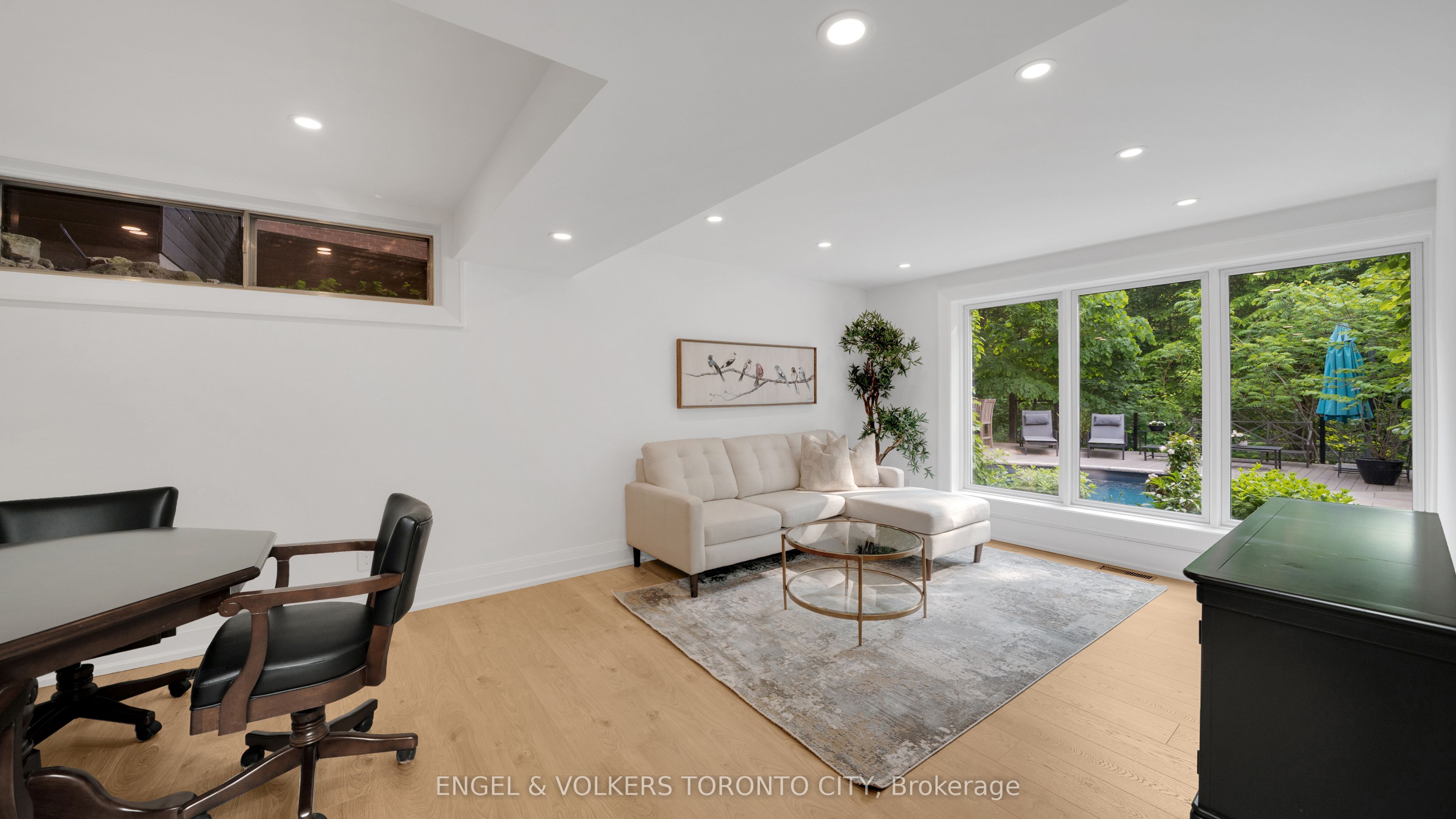 Luxury Living Meets Ravine Serenity in Prestigious St. Andrew-Windfields. A masterfully reimagined residence blending nearly 5,000 sq ft of refined living space with sweeping ravine views - where nature, elegance, and modern design converge. Tucked in the heart of one of Toronto's most prestigious enclaves, this home welcomes you with sun-drenched interiors, a statement staircase, and a seamless open-concept layout. A richly panelled office sets the tone for sophistication, while the chef's kitchen - appointed with premium Miele appliances -flows effortlessly into the dining and family room that opens onto a private deck overlooking the treetops. Upstairs, four spacious bedrooms include a luxurious primary retreat featuring a spa-inspired ensuite and custom walk-in dressing room. The walkout lower level is an entertainer's dream, with a grand rec room, fireplace, full bar, two additional bedrooms, and direct access to the resort-style backyard. Step into your urban oasis - complete with a saltwater pool, oversized deck, dedicated lounge and dining zones, and lush landscaping designed for unforgettable outdoor living. Located minutes from elite schools, fine shopping, golf courses, and scenic trails, this is a rare chance to own a bespoke residence in one of the city's most distinguished neighborhoods. Timeless luxury. Unmatched tranquility. Schedule your private viewing today.
